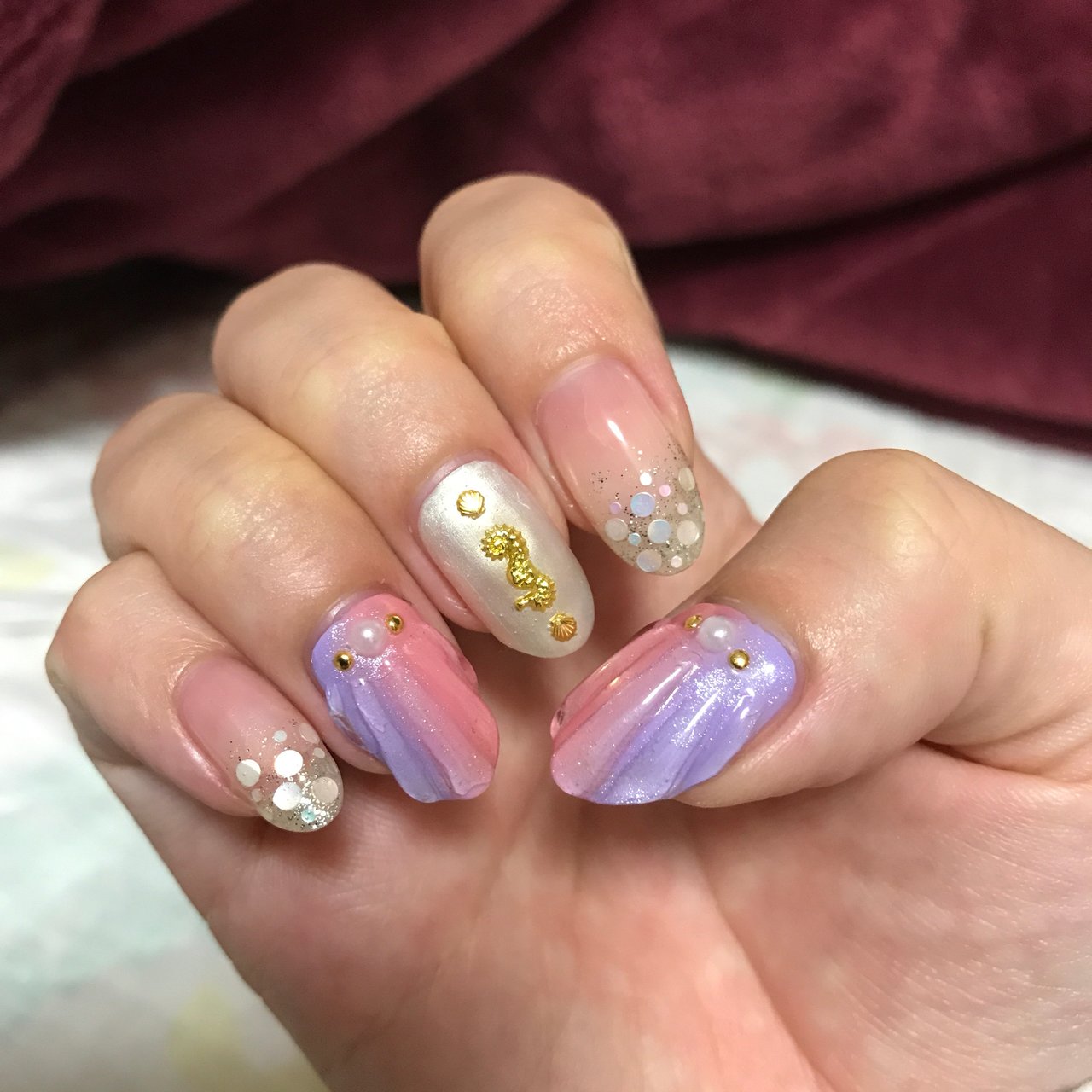夏 ハンド 人魚の鱗 ピンク パープル Yu Na Pdubbdgのネイルデザイン No ネイルブック